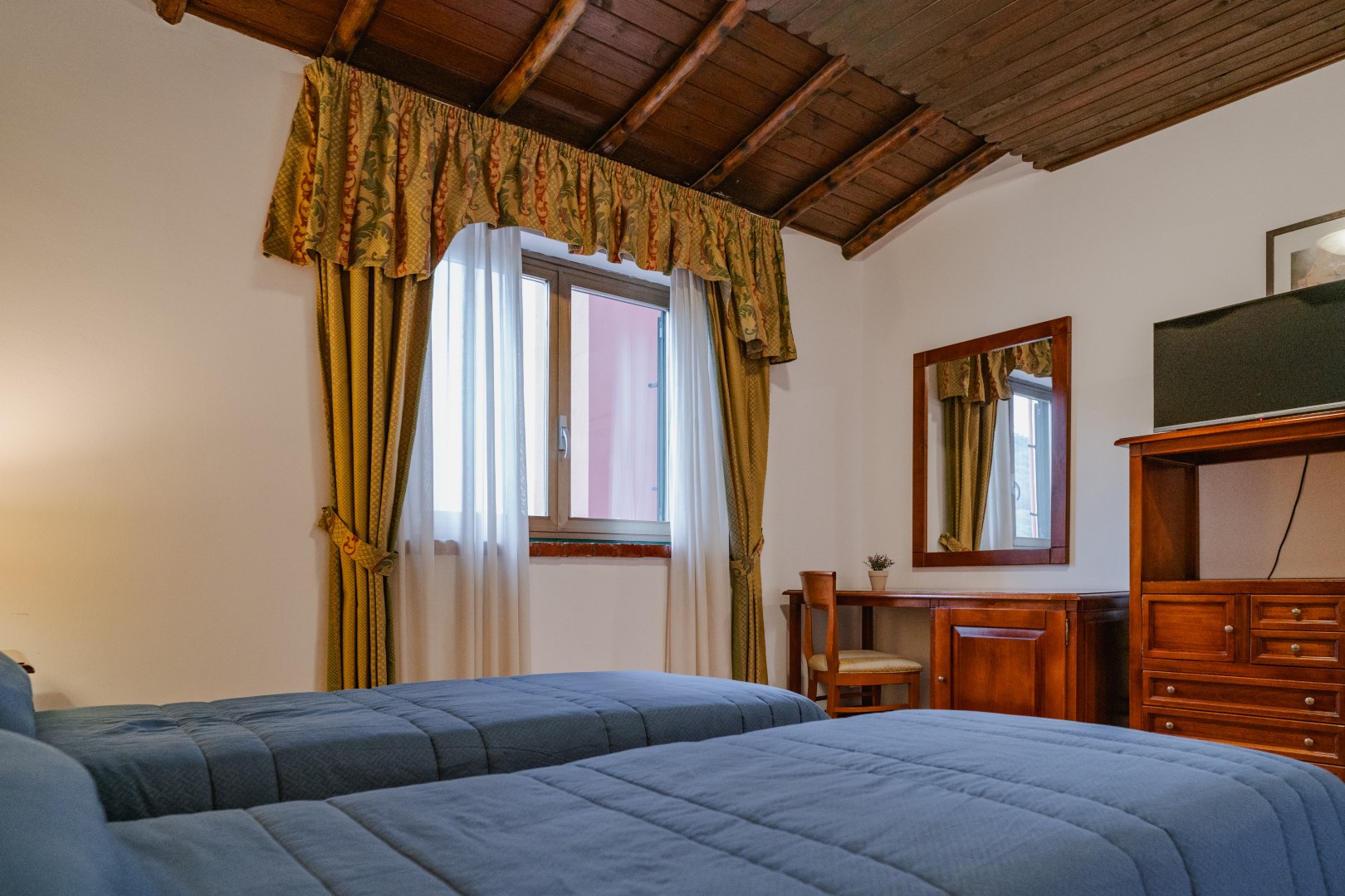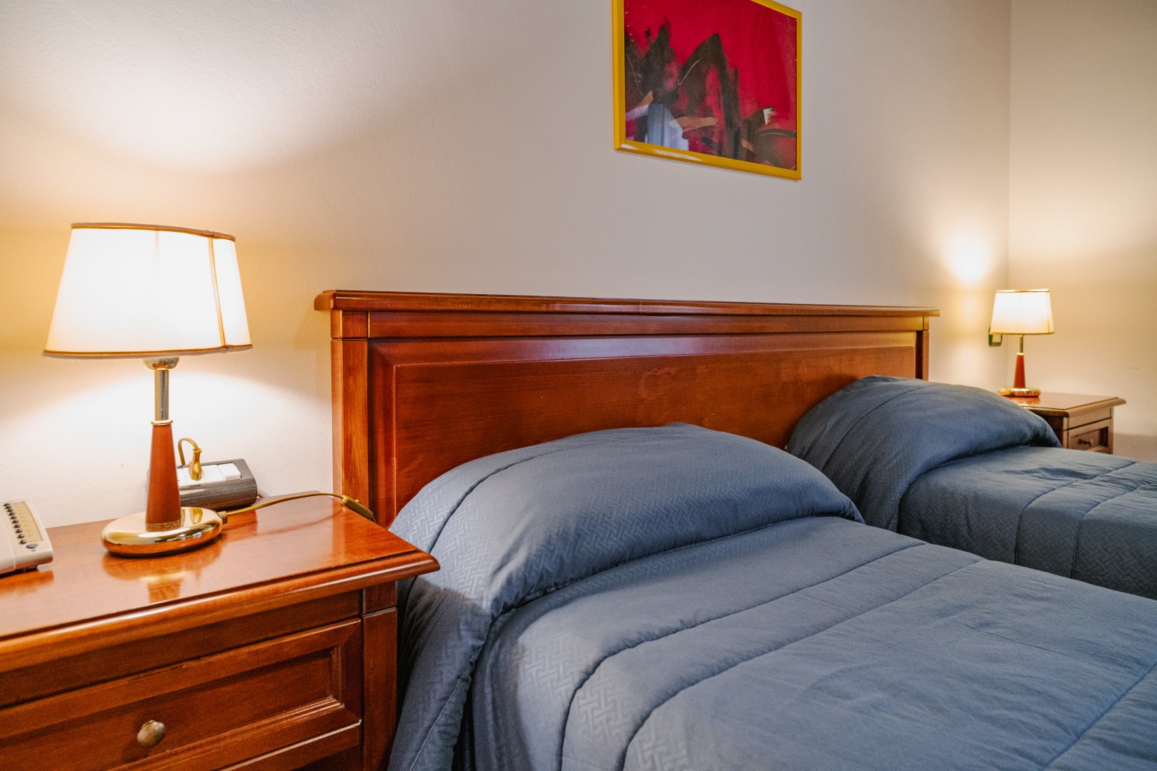 Le nostre camere standard offrono un ambiente accogliente e funzionale, ideale per chi viaggia per lavoro o per piacere e desidera un soggiorno comodo, senza rinunciare alla qualità. Dotate di letto matrimoniale o due letti singoli, queste camere dispongono di bagno privato con set di cortesia, TV satellitare, frigobar, aria condizionata autonoma e connessione Wi-Fi gratuita. L’arredo è curato nei dettagli per creare un’atmosfera calda e rilassante.